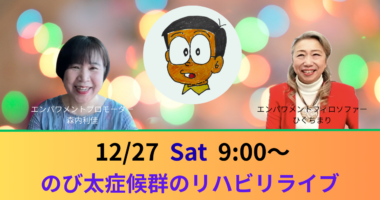 エンパワメントフィロソファーひぐちまりです。-----------ライブ配信--------テーマ:のび太症候群のリハビリライブ日時:12月…